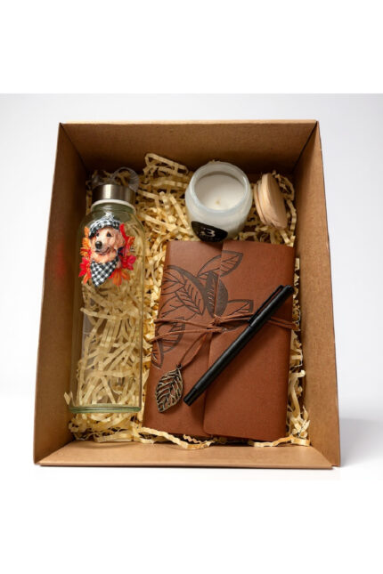 Deri Kaplı Defter, Cam Matara ve Kokulu Mumlu Özel Hediye Kutusu