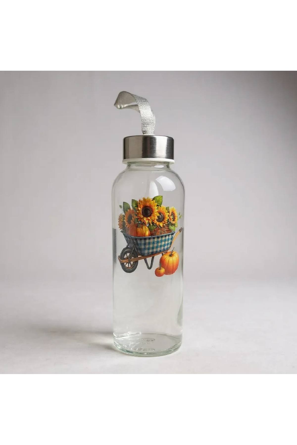 Cam Matara – Sonbahar Temalı, 500 ml (Kapaklı & Taşınabilir)