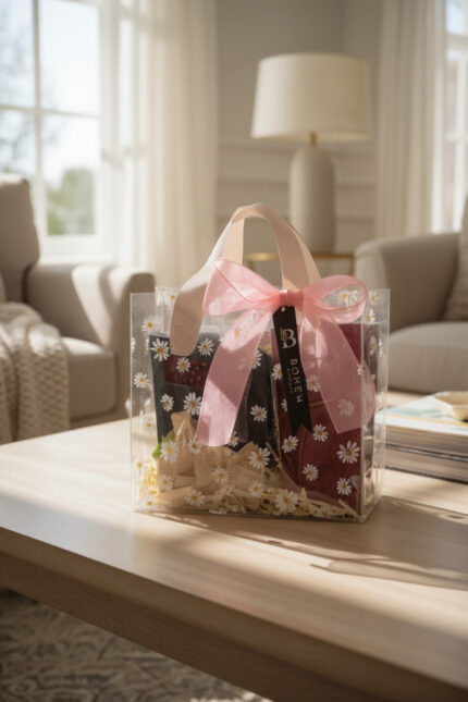Çiçek Desenli Şeffaf İçi Dolu Çanta: Şıklık ve Zarafetin Buluşma NoktasıBu eşsiz hediye seti, sevdiklerinize sunabileceğiniz en şık ve anlamlı armağanlardan biri.; Çiçek desenleriyle süslü şeffaf çantasıyla dikkat çeken bu set, zarafet ve estetiği bir arada yaşatıyor.; İçerisinde bulunan ürünler her biri özel olarak seçilmiş, yaşam alanınızı güzelleştirecek ve ruhunuzu dinlendirecek bir deneyim sunuyor.; Şık Runner: Masa düzeninizdeki estetiği tamamlayan zarif ve göz alıcı bir parça.; Hem klasik hem de modern tasarımlarınıza uyum sağlar.; Buket Mum: Ortamınıza sıcaklık katarken huzur verici kokusuyla ruhunuzu dinlendirir.; Her anınızı özel kılar ve unutulmaz hale getirir.; Oda Kokusu: Evinizin her köşesine yayılacak muhteşem bir koku ile atmosferinizi tazeler.; Gün boyu ferahlık ve enerji dolu bir ortam sağlar.; Dekoratif Çerçeve: Anılarınızı sergilemenin en güzel yolu.; Çiçek desenleriyle uyumlu yapısı dekorunuza şıklık katarken, değerli anılarınızı ön plana çıkarır.; Bu set, sadece tasarımlarının güzelliği ile değil, aynı zamanda kullanışlılığı ile de göz dolduruyor.; Özel günlerde veya sadece sürpriz yapmak istediğinizde, bu benzersiz hediye seti ile duygularınızı en iyi şekilde ifade etme fırsatını yakalayın.; Etkileyici çiçek desenleri ve şeffaf yapısıyla öne çıkan çanta, her daim kullanabileceğiniz ve stilinizi yansıtabileceğiniz özel bir aksesuar sunar.; Bu seti tercih ederek günlük yaşamınıza estetik ve konfor katacak, başkalarının gözünde fark yaratacaksınız.; Şimdi, hem kendinizi hem de sevdiklerinizi bu zarif tasarımla şımartma zamanı!