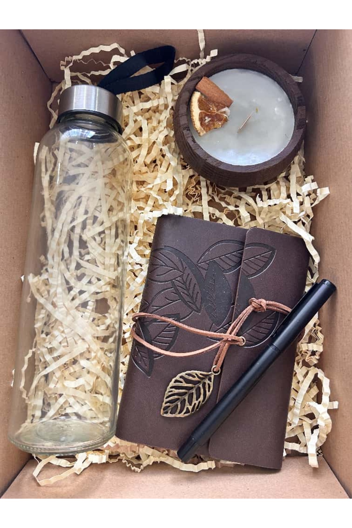 Ofis Çalışanlarına ve Öğretmenlere Özel Hediye SetiOfis çalışanları ve öğretmenler için özenle hazırlanan bu özel hediye kutusu, profesyonel yaşantının getirilerini en iyi şekilde karşılamaya yardımcı olan üç harika üründen oluşmaktadır.; Sevdiklerinize veya kendinize kaliteli ve anlamlı bir hediye verin; hem iş ortamında motivasyon sağlayın, hem de kişisel zamanlarını daha özel hale getirin.; Cam Su Matara500 ml kapasite ile susuzluğunuzu giderirken cebinizde taşıma rahatlığı sunar.; Şık tasarıma sahip kılıfı ile günlük kullanıma uygundur.; Sağlıklı ve çevre dostu; sadece 70 derece üstü sıcak suya dayanıklı olmayışını dikkate almanız yeterlidir.; Deri Not Defteri ve KalemZarif ve şık tasarımı ile dikkat çeken deri kapaklı not defteri, her türlü notu ve fikri yazabileceğiniz mükemmel bir ortam sunar.; Uzun ömürlü ve dayanıklı yapısıyla en önemli düşüncelerinizi saklamanızı sağlar.; Kalem ile kusursuz uyum yakalar, yazılarınızda akıcılığı garanti eder.; MumRahatlatıcı ve sıcak bir ortam yaratmanıza yardımcı olur.; Hoş kokusuyla zihinsel dinginlik sağlar, stresli günlerin bitiminde huzurlu bir atmosfer yaratır.; Kaliteli malzeme kullanımı sayesinde uzun süreli kullanım imkanı tanır.; Eşsiz kombinasyonu sayesinde, bu hediye seti herkesin kalbini fethedebilir.; Kendinizi veya sevdiklerinizi mutlu etmek için ideal bir seçenek olan “Ofis Çalışanlarına ve Öğretmenlere Özel Hediye Kutusu”, özel günleri veya sıradan anları daha unutulmaz kılmak için doğru seçim.; Hediyenizi şık kutulu paket ile sunarak, karşı tarafı ne kadar önemsediğinizi gösterin.; Uzun ömürlü ve işlevsel bu ürünler, profesyonellik ve bireysel rahatlığı en iyi şekilde bir araya getiriyor.