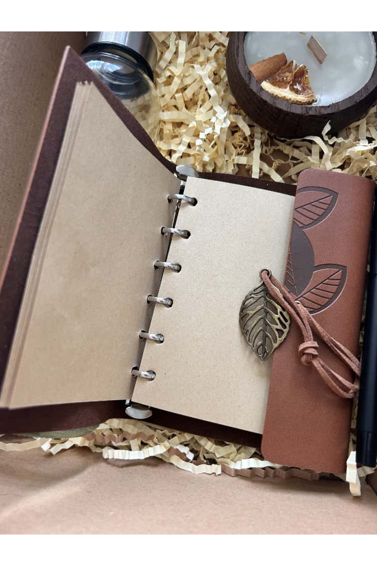 Ofis Çalışanlarına ve Öğretmenlere Özel Hediye SetiOfis çalışanları ve öğretmenler için özenle hazırlanan bu özel hediye kutusu, profesyonel yaşantının getirilerini en iyi şekilde karşılamaya yardımcı olan üç harika üründen oluşmaktadır.; Sevdiklerinize veya kendinize kaliteli ve anlamlı bir hediye verin; hem iş ortamında motivasyon sağlayın, hem de kişisel zamanlarını daha özel hale getirin.; Cam Su Matara500 ml kapasite ile susuzluğunuzu giderirken cebinizde taşıma rahatlığı sunar.; Şık tasarıma sahip kılıfı ile günlük kullanıma uygundur.; Sağlıklı ve çevre dostu; sadece 70 derece üstü sıcak suya dayanıklı olmayışını dikkate almanız yeterlidir.; Deri Not Defteri ve KalemZarif ve şık tasarımı ile dikkat çeken deri kapaklı not defteri, her türlü notu ve fikri yazabileceğiniz mükemmel bir ortam sunar.; Uzun ömürlü ve dayanıklı yapısıyla en önemli düşüncelerinizi saklamanızı sağlar.; Kalem ile kusursuz uyum yakalar, yazılarınızda akıcılığı garanti eder.; MumRahatlatıcı ve sıcak bir ortam yaratmanıza yardımcı olur.; Hoş kokusuyla zihinsel dinginlik sağlar, stresli günlerin bitiminde huzurlu bir atmosfer yaratır.; Kaliteli malzeme kullanımı sayesinde uzun süreli kullanım imkanı tanır.; Eşsiz kombinasyonu sayesinde, bu hediye seti herkesin kalbini fethedebilir.; Kendinizi veya sevdiklerinizi mutlu etmek için ideal bir seçenek olan “Ofis Çalışanlarına ve Öğretmenlere Özel Hediye Kutusu”, özel günleri veya sıradan anları daha unutulmaz kılmak için doğru seçim.; Hediyenizi şık kutulu paket ile sunarak, karşı tarafı ne kadar önemsediğinizi gösterin.; Uzun ömürlü ve işlevsel bu ürünler, profesyonellik ve bireysel rahatlığı en iyi şekilde bir araya getiriyor.