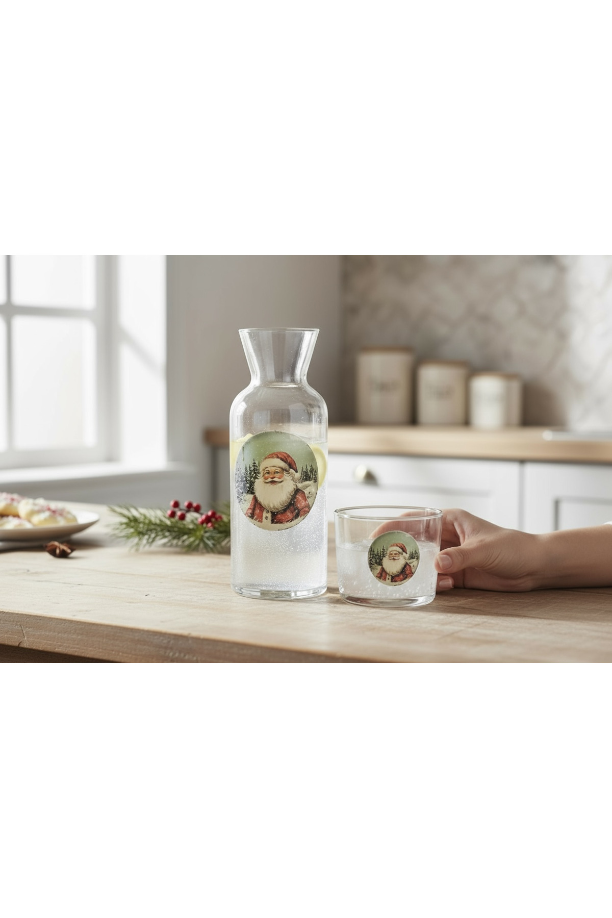 EnYeni yıl akşamlarınızı unutulmaz kılacak ve sofralarınızda şıklığı tamamlayacak olan bu özel yılbaşı baskılı sürahi setiyle tanışın! Sadece işlevselliği ile değil, aynı zamanda estetik tasarımıyla da gözleri üzerine çeken bu ürün, yeni yıl ruhunu evinize taşımanız için ideal bir seçim.; Öne Çıkan Özellikler:Özel Yılbaşı Baskısı: Sürahi ve bardağın üzerindeki yılbaşı temalı özel baskılar, sofralarınıza eğlenceli bir dokunuş katarken, misafirlerinizi de büyüler.700 ml Kapasite: Geniş hacmi sayesinde sevdiklerinizle birlikte doyasıya içecek keyfi yapma imkanı sunar.; Cam Malzeme: Kaliteli cam malzemeden üretilmiş olup, sağlığınızı ve içeceklerinizin doğallığını korur.; Şık Bardak: Sürahi ile uyumlu tasarımdaki bardak, bütünlük ve zarafet sunar.; Tek başına kullanmak istediğinizde de harika bir detay olarak yer alabilir.; Kolay Kullanım: Ergonomik yapısı sayesinde rahatça tutulur ve misafirlerinize içecek servisi yaparken pratiklik sağlar.; Faydalar:Estetik Görünüm: Sofralarınıza şıklık ve zarafet kazandırırken, yılbaşı dekorasyonunu tamamlar.; Dayanıklılık: Kaliteli materyali sayesinde uzun süreli kullanım imkanı sunar.; Çok Amaçlı Kullanım: İçme sularından leziz kokteyllere, çeşitli içecekler için idealdir.; Uzun yıllar boyunca sizi ve sevdiklerinizi mutlu edecek olan bu yılbaşı baskılı sürahi seti, yeni yıla girmeden önce yapacağınız en anlamlı ve estetik yatırımlardan biri olacaktır.; Sizin de yılbaşı sofranızda ya da günlük kullanımda bu şıklığı ve işlevselliği yaşamak için hemen satın alın!