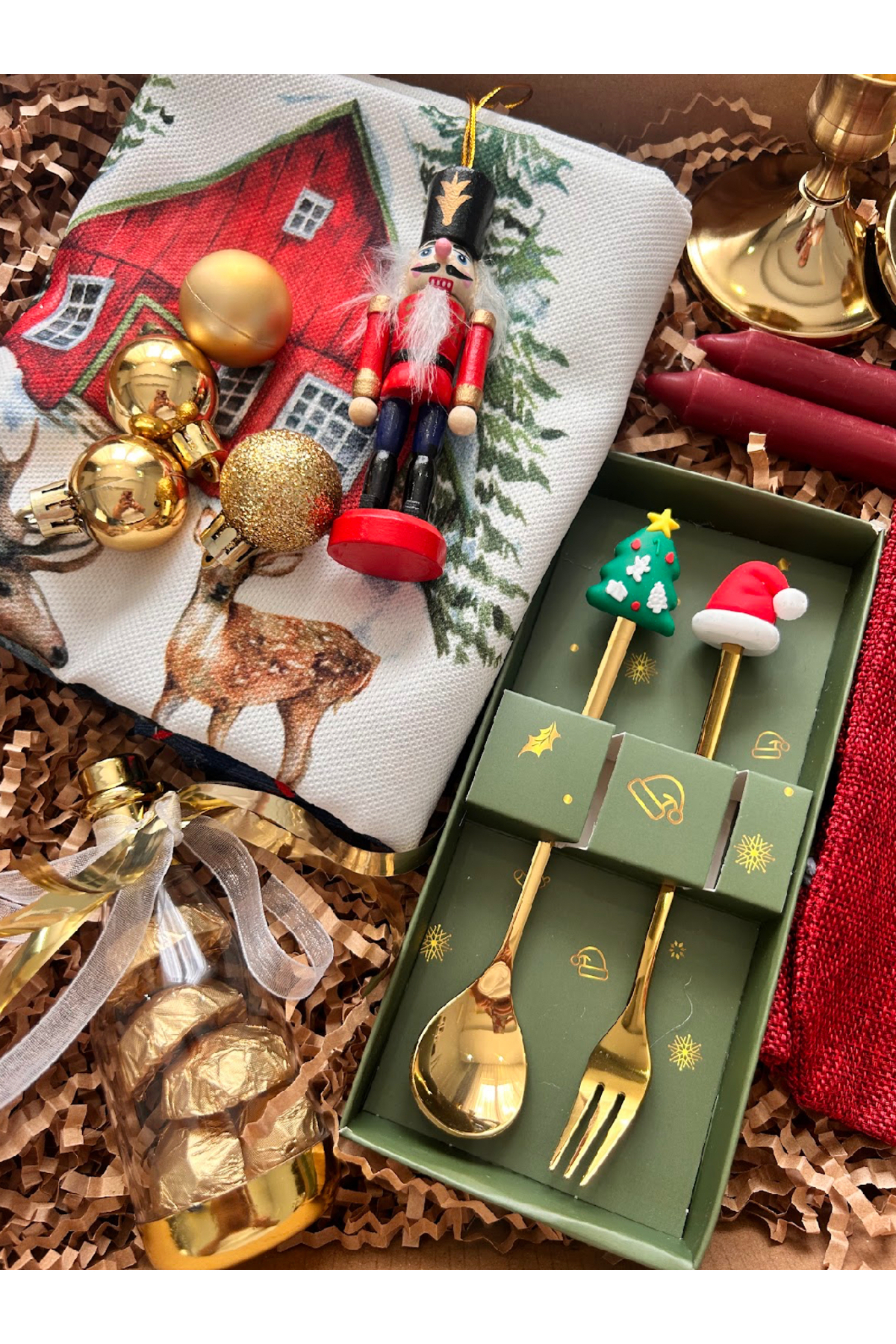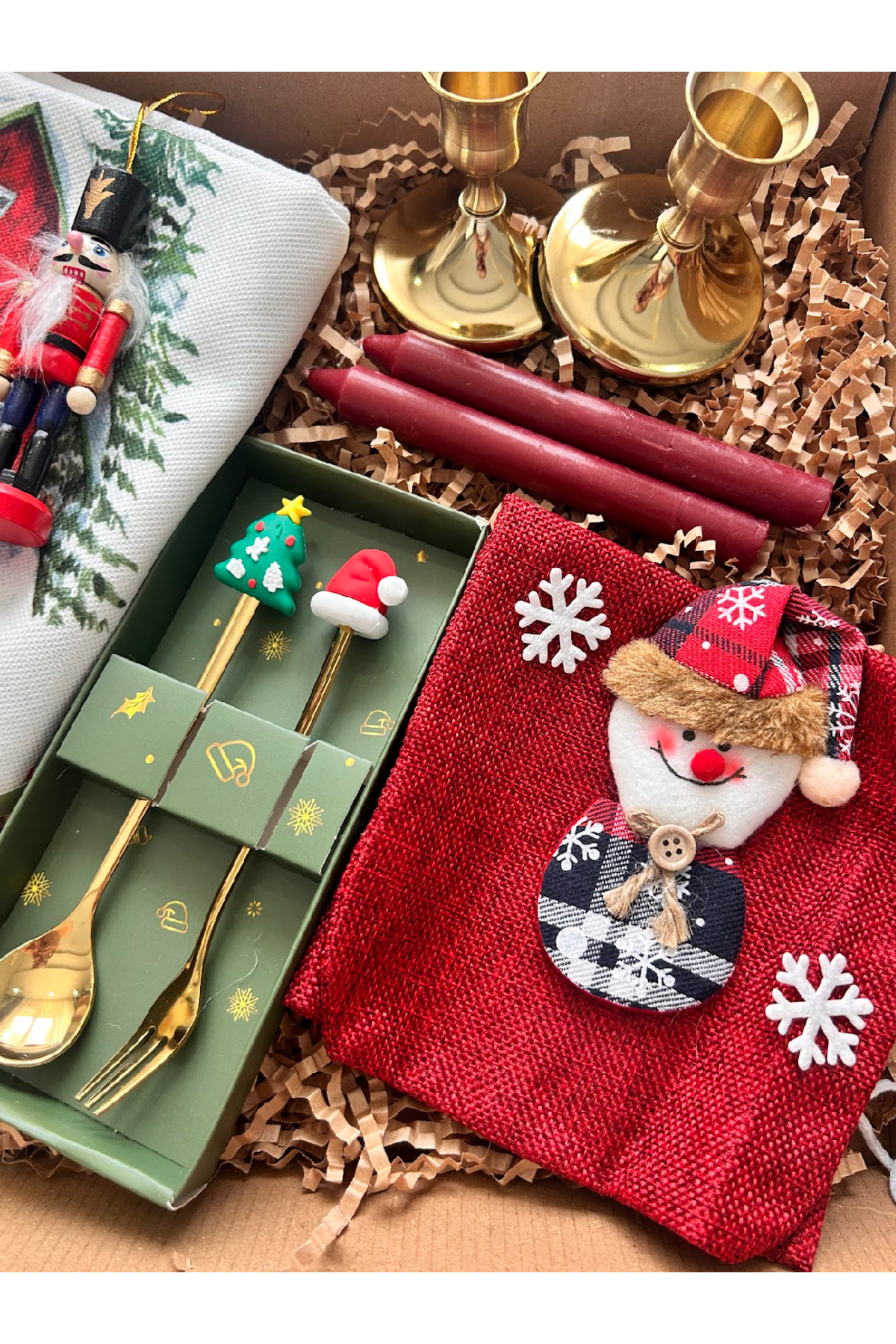 Yılbaşı Hediye Kutusu | Şarap Kılıfı, Gold Şamdan, Çikolata ve Dekoratif Süsler