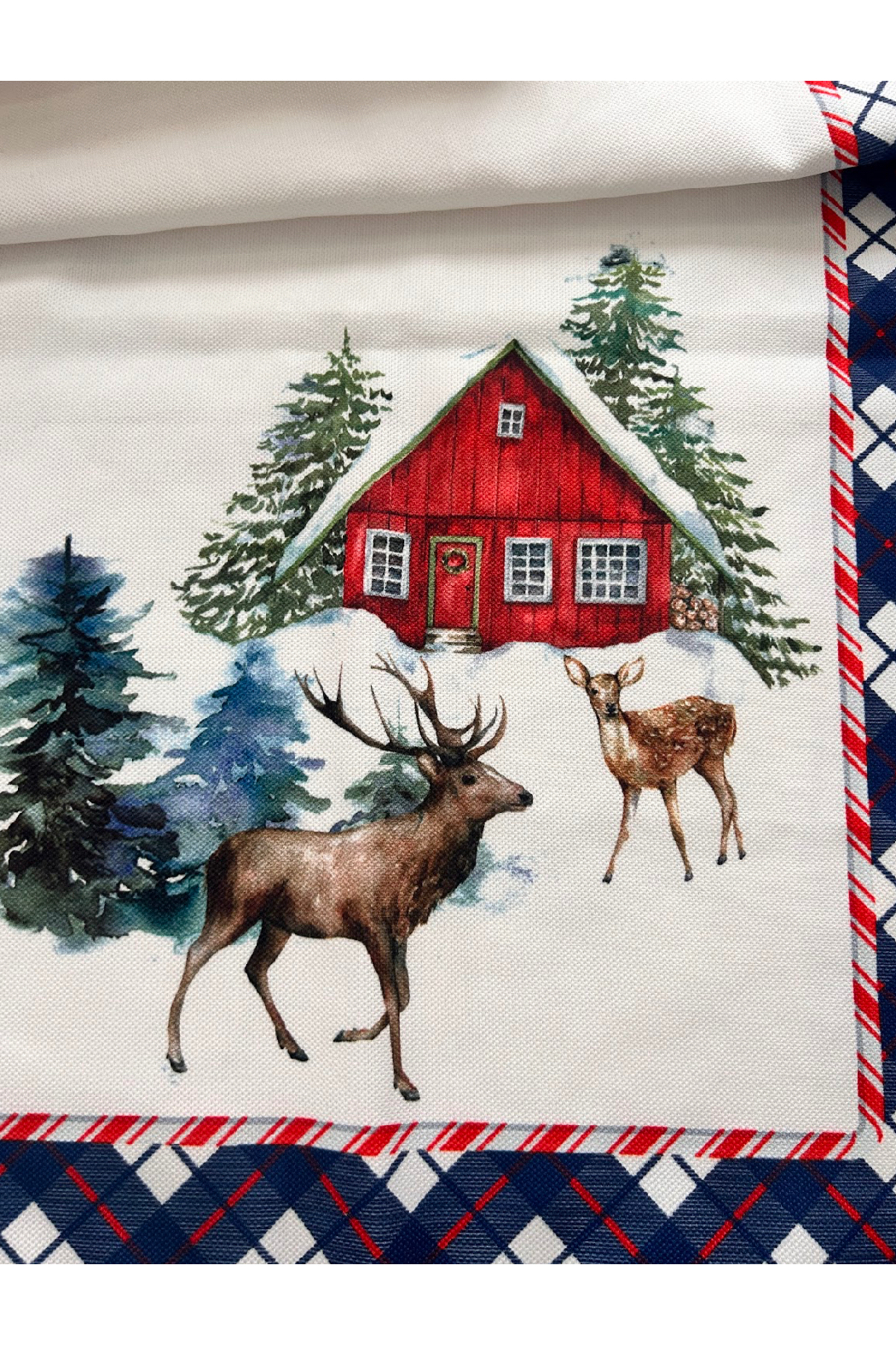 Çiçek Detaylı Tül ve Jüt Kumaş Dekoratif Runner - Tül 65 cm , Jüt 100 cm
