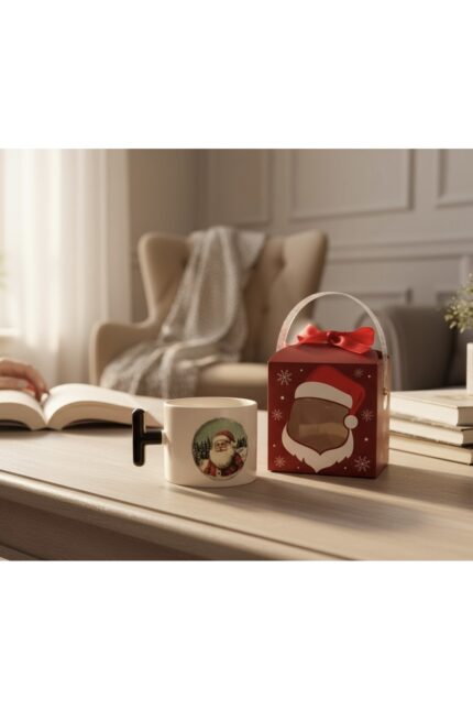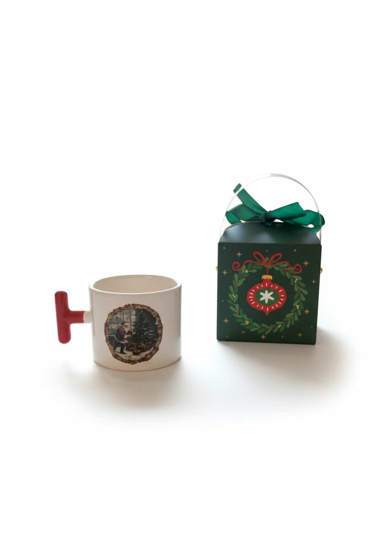 Yılbaşı Temalı Noel Baba Baskılı T Kulplu Kupa – Hediye Kutulu
