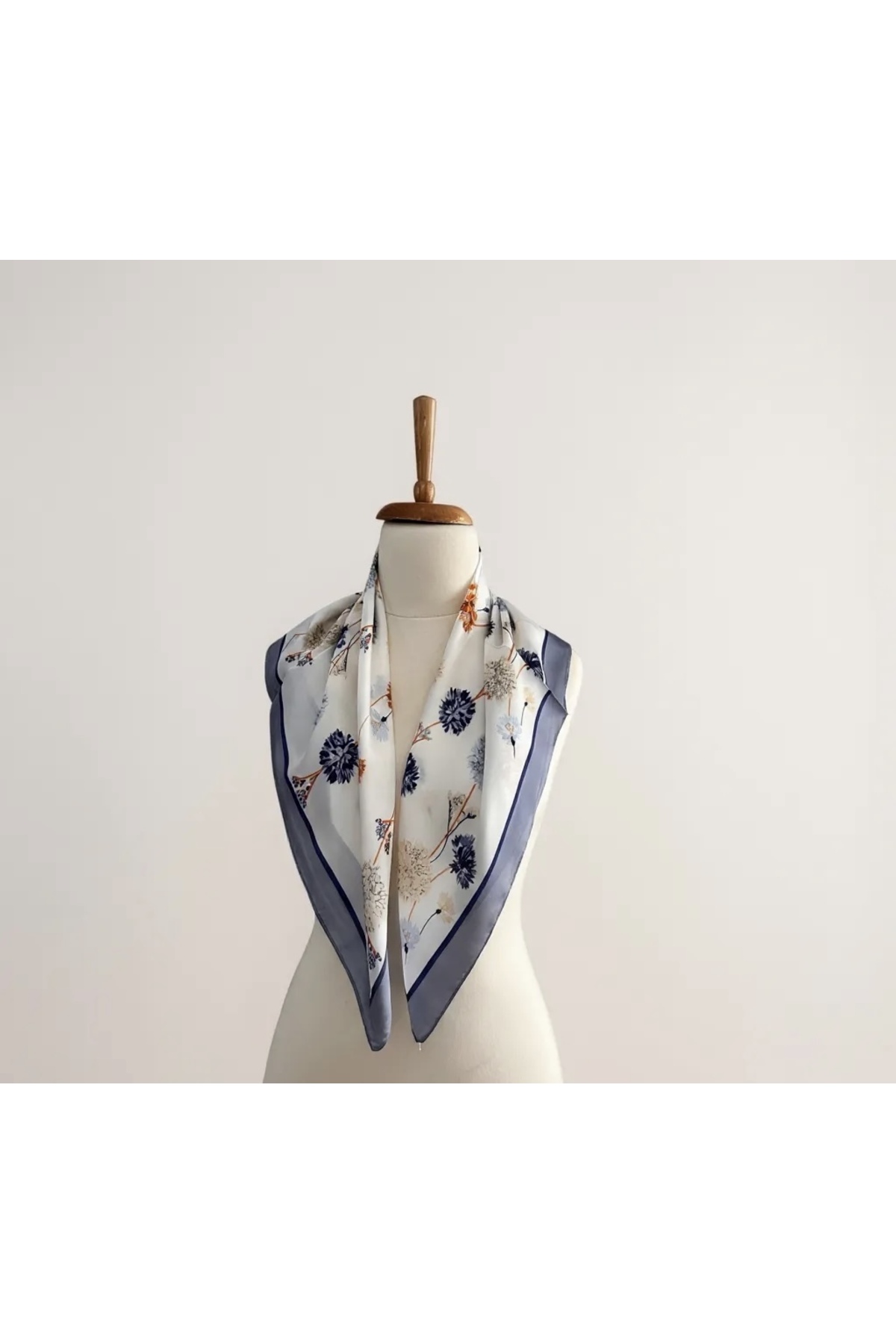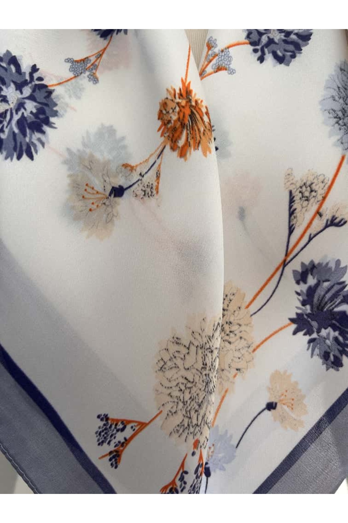 Zarif Çiçek Desenli Saten Eşarp – Fular – Şal – Bandana 70*70 cm