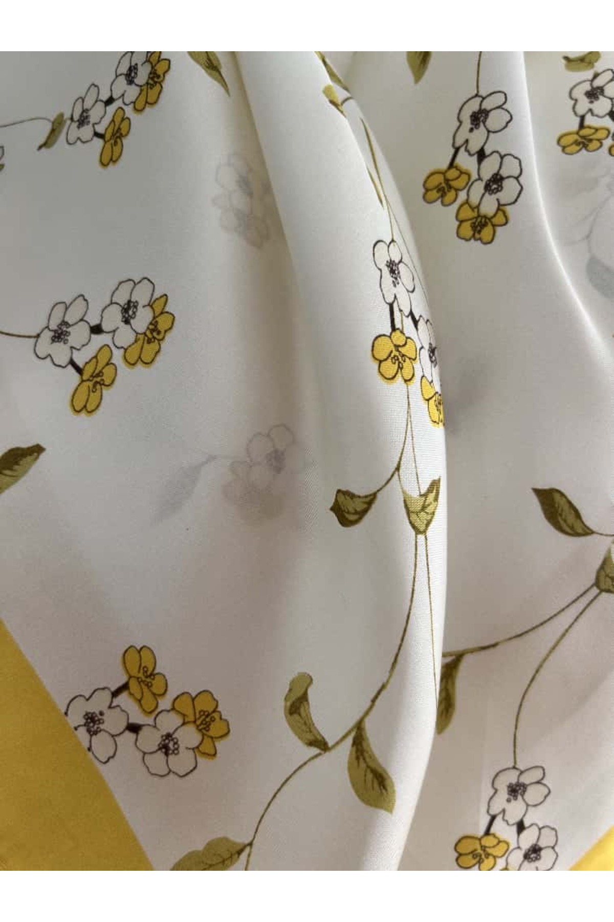 Zarif Sarı Çiçek Desenli Saten Eşarp – Fular – Şal – Bandana 70*70 cm